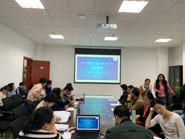 2019年4月9日,新葡萄amg官网在临港校区电信楼B402召开全体教师大会,学习贯彻全国教育大会和上海市教育大会。学院党委书记潘耀芳主持会议。