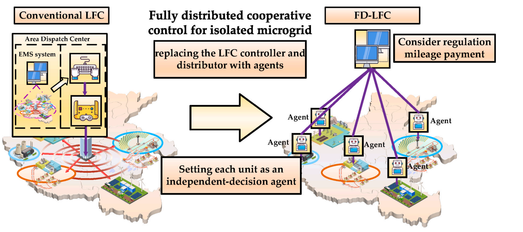 为促进产消者参与孤立微电网频率调节并解决基于性能市场机制带来的控制复杂性与运营商利益冲突问题,李嘉文副教授和崔昊杨教授及其团队创新性提出全分布式负荷频率控制方法,使作为独立智能体的调节服务提供商在线通过聚合本地频率达成全局最优决策,并在离线学习时设计兼顾自身与他人利益的奖励函数;该方法通过引入基于高价值轨迹元知识的知识先验多智能体深度元演员-评论家算法实现快速协作多任务学习,以生成高质量控制策略;在中国南方电网运营的永兴岛孤立微电网的实验评估证实FD-LFC能平衡提供商利益,有效降低频率误差、发电成本和调节里程支付。其工程价值在于为含产消者的孤立可持续能源系统提供了一种能同时优化系统频率稳定性、经济性并公平协调多市场主体利益的高效分布式频率控制方法,推进了清洁能源微电网智能运行与市场机制协同优化的发展。该成果以《Knowledge prior deep meta-reinforcement learning-based load frequency control of isolated sustainable energy system considering electricity prosumers》为题发表于《Journal of Cleaner Production(中科院一区,IF=9.7)