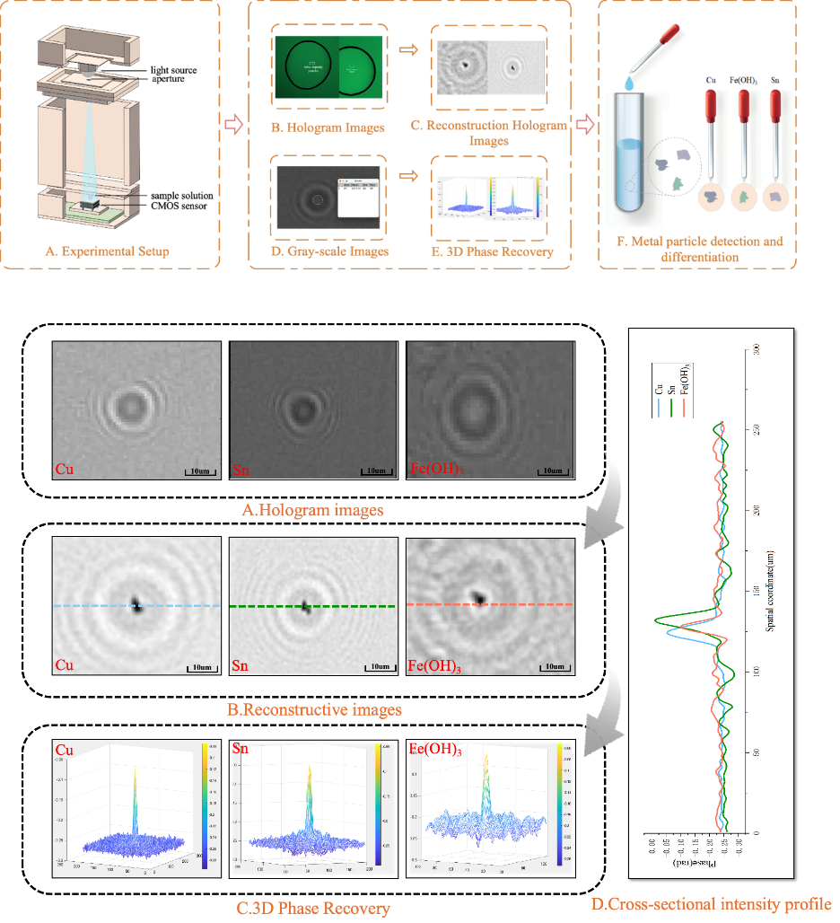 针对铅酸电池电解液中金属杂质检测传统方法成本高、操作复杂等瓶颈问题,2023级研究生周昊、薛亮教授和崔昊杨教授及其团队创新性提出“基于无透镜数字全息技术的金属杂质颗粒检测方法”,利用紧凑的设备配置,采用绿色 LED 光源和 CMOS 相机捕获杂质的全息图像,并通过角谱算法重建清晰的粒子图像,进而依据重建距离和平均灰度差分析实现对铜、锡和铁等金属杂质的快速精准识别与区分,为电池维护与质量控制提供了低成本、高效率的解决方案,对提升储能系统可靠性具有重要工程价值。该成果以《Detection of Metal Impurity Particles in Lead-Acid Battery Electrolyte Based on Lens-Free Digital Holography Technology》为题发表于《Advanced Science(中科院一区,IF=14.1)