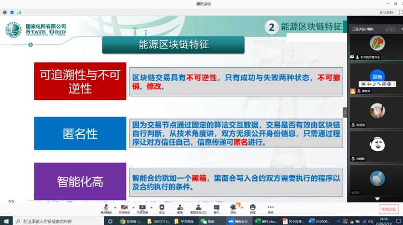 2020年819日下午,电力设备监测与安全团队,崔昊杨、秦伦明等老师和研究生,共同听取胡伟老师主讲的《能源区块链》的学术报告。