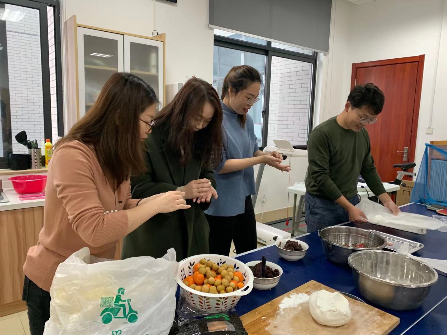 一早,大家就已经忙开了,做汤圆、煮汤圆、烤蛋挞、炸鸡米……。大家干劲十足,欢声笑语,活动现场非常热闹,始终贯穿着合作、团结、和谐、宽松、活泼的气氛。大家都洋溢在节日的喜悦之中。