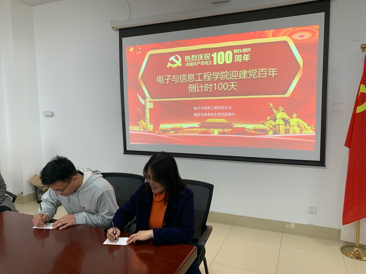 3月23日,建党100周年100天倒计时之际,新葡萄8883官网amg官网举行“砥砺峥嵘百年路,翘首共绘锦绣程”建党百年倒计时100天活动启动仪式。学院党委书记潘耀芳、党委副书记周冬梅、党委委员朱武、曹以龙,教师党员和学生党员参加,会议由通信光电本科生党支部书记王思绮主持。