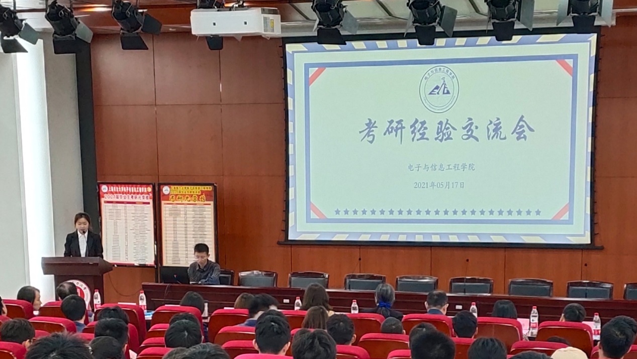 随后会议进入学长经验分享环节,分别由今年成功考入电子科技大学、华北电力大学、上海大学、上海理工大学以及我校的8位学长分享了自己的考研历程,学长们结合切身经历分别从考研的时间安排、学校的选择、考研复习方法以及调剂心态的调整等方面,为同学们带来了一堂饕餮大餐。在场同学听的酣畅淋漓,受益良多,会场不时响起阵阵掌声。