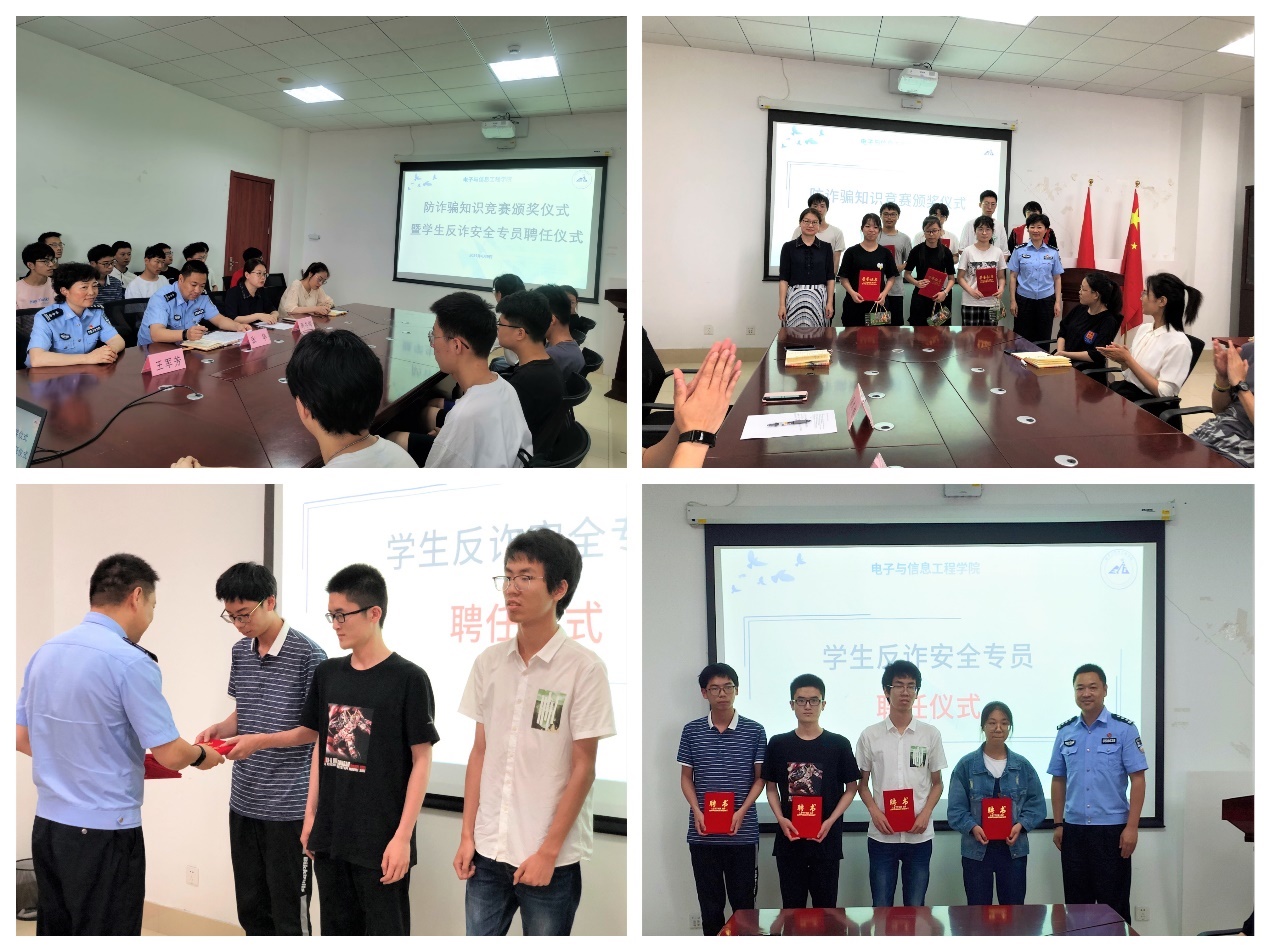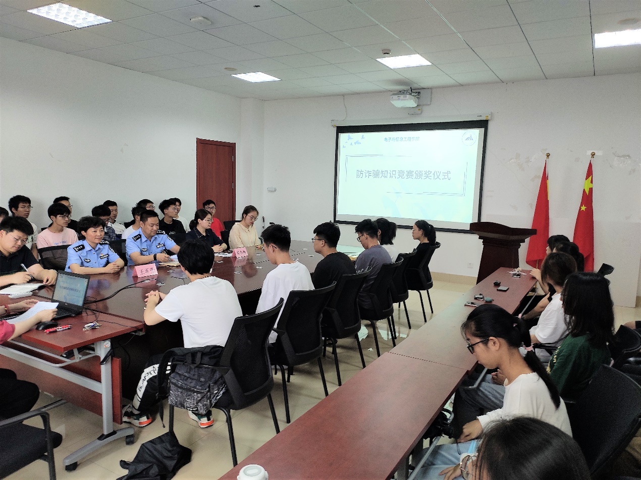 为进一步增强大学生对电信网络诈骗的了解,提升对电信网络诈骗的防范意识,学会如何预防电信网络诈骗,切实维护学生的人身和财产安全,新葡萄8883官网amg官网于5月中旬在全院范围内开展了大学生防诈骗知识竞赛活动,并于6月9日在电信楼B402会议室开展了“防诈骗知识竞赛颁奖仪式暨学生反诈安全专员聘任仪式”。新葡萄8883官网amg官网党委副书记周冬梅、临港高校派出所副所长张华、警官王军芳和全体辅导员以及获奖学生参会。