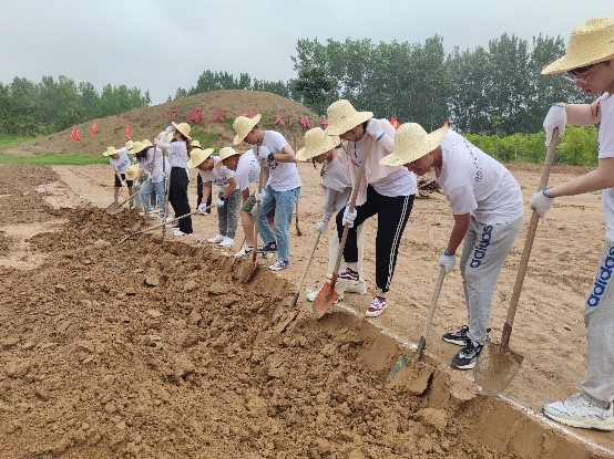 在模拟体验环节中,队员们身体力行地为盐碱地进行“翻淤压沙”,为丘陵山坡进行“贴膏药”,深刻感悟焦裕禄精神的伟大之处,也更加珍惜今天的美好生活。