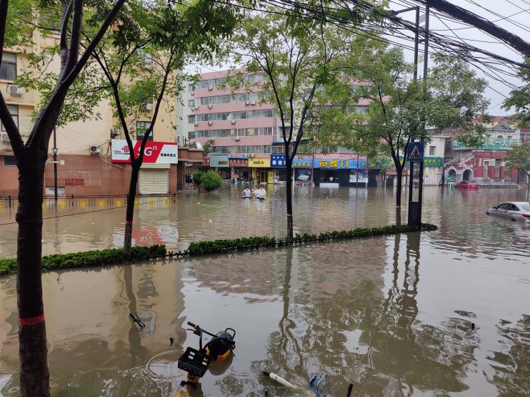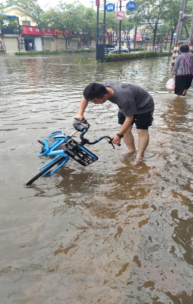 图 8 暴雨肆虐下水位及膝的开封街道