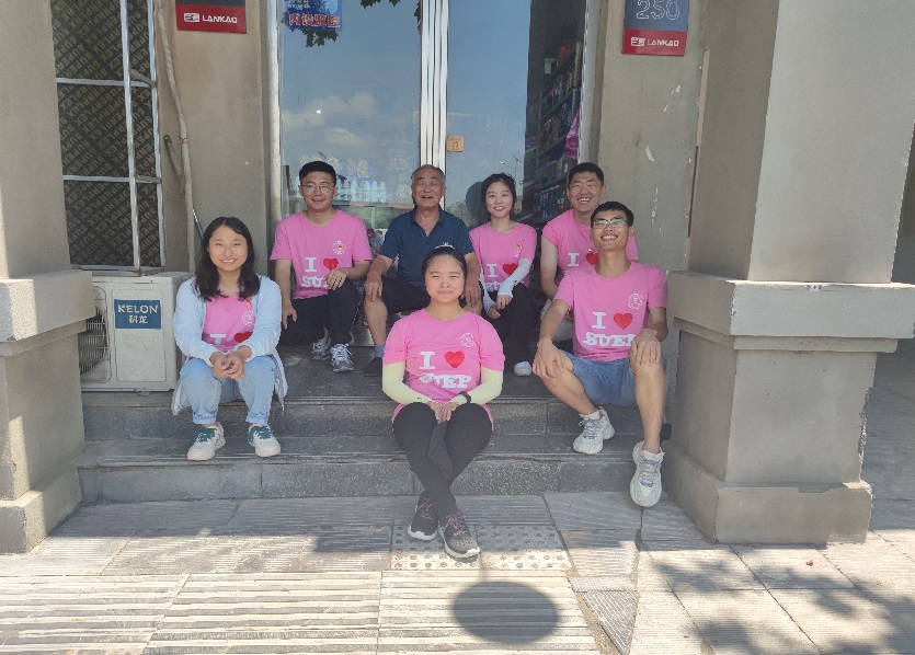 图 7 实践队员完成采访后,与小商店老板谢大爷的亲切合影