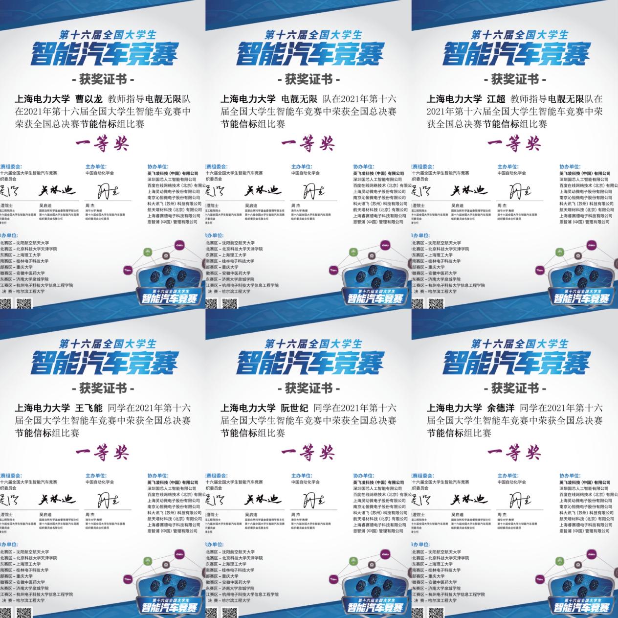 近日,来自新葡萄8883官网amg官网的智能车车队“电靓无限”于2021年第十六届全国大学生智能汽车竞赛中获得节能信标组全国第五名(并列)的好成绩,成功摘得全国一等奖;于此同时,参加2021年全国大学生物联网设计竞赛(华为杯)的“空天地立体化智慧电网线路守卫者”小队也传来捷报,一举摘得全国一等奖。