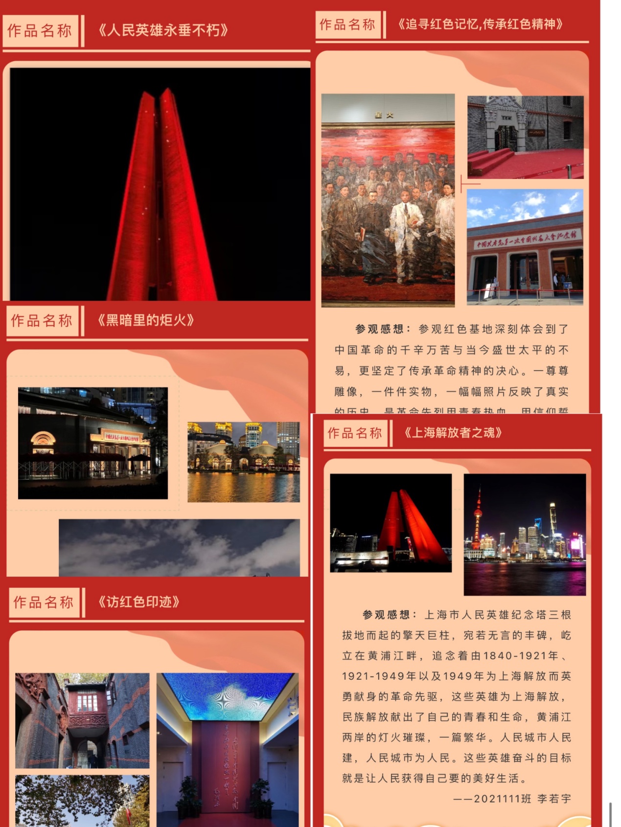传承红色文化,践行初心使命;参观红色基地,赓续红色血脉。习近平总书记强调要“用好红色资源,传承好红色基因,把红色江山世世代代传下去”。国庆期间,新葡萄8883官网amg官网面向全体师生开展了“参观红色基地,寻找红色足迹”创意摄影作品征集活动,通过参观红色基地的形式重温红色记忆,传承红色基因,从红色文化中汲取奋进力量。活动得到学院师生的热烈响应,纷纷递交参赛作品。