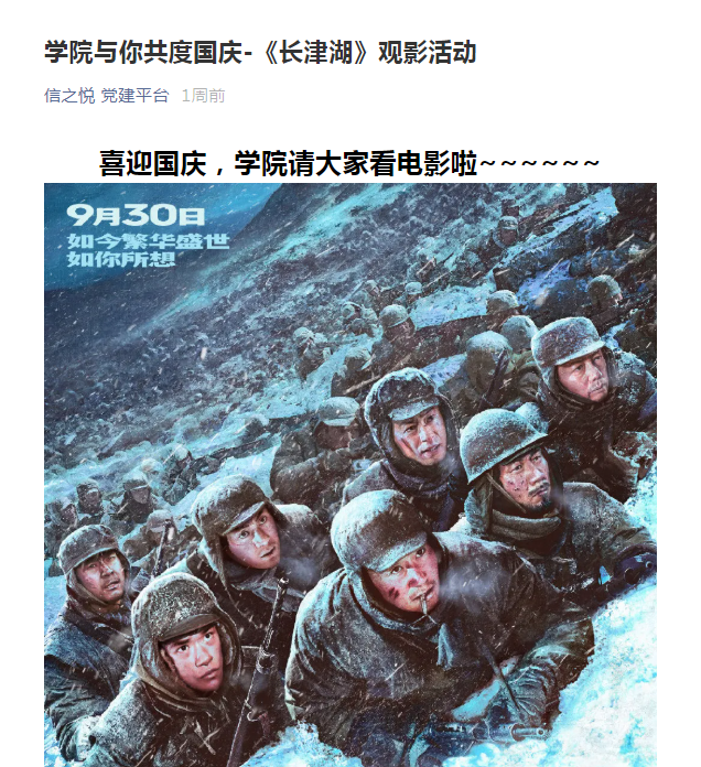 为传承红色基因、赓续红色血脉,进一步弘扬爱国主义精神,激发学生的爱国热情和奋斗精神主旋律,10月3日下午,新葡萄8883官网amg官网组织本科生及研究生集体观看抗美援朝主题影片《长津湖》。观影结束后,学生们相互交流观影心得,纷纷表示要铭记历史,传承并弘扬伟大抗美援朝精神,站在“两个一百年”历史交汇点上不忘初心,牢记使命,为实现中华民族伟大复兴而不懈奋斗。