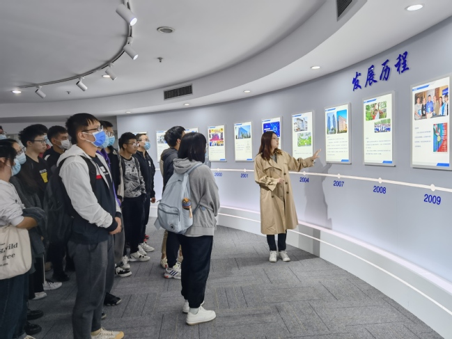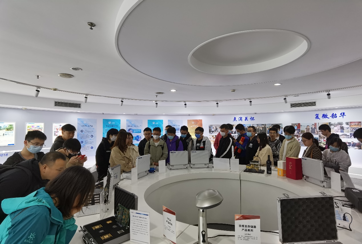 师生一行来到复旦微电子的杨浦分部,吕沁沁对新葡萄8883官网amg官网师生的来访表示欢迎并结合宣传视频介绍了复旦微电子的基本情况。该公司是国内从事超大规模集成电路的设计、开发、生产(测试)和提供系统解决方案的专业公司,是国内成立最早、首家上市的股份制集成电路设计企业,现已形成安全与识别、智能电表、非挥发存储器、智能电器、可编程器件FPGA、互联网创新六大成熟的产品线和系统解决方案,产品行销30多个国家和地区。随后吕沁沁在展览厅带着师生了解了公司创办以来的历史和取得的成就,复旦微电子自1998年成立以来,经过筚路蓝缕的创立期和追求卓越的成长期,逐步形成了信任尊重、诚实守信、激情创新、领先卓越的企业文化,正逐步成为国内乃至国外一流集成电路设计企业。