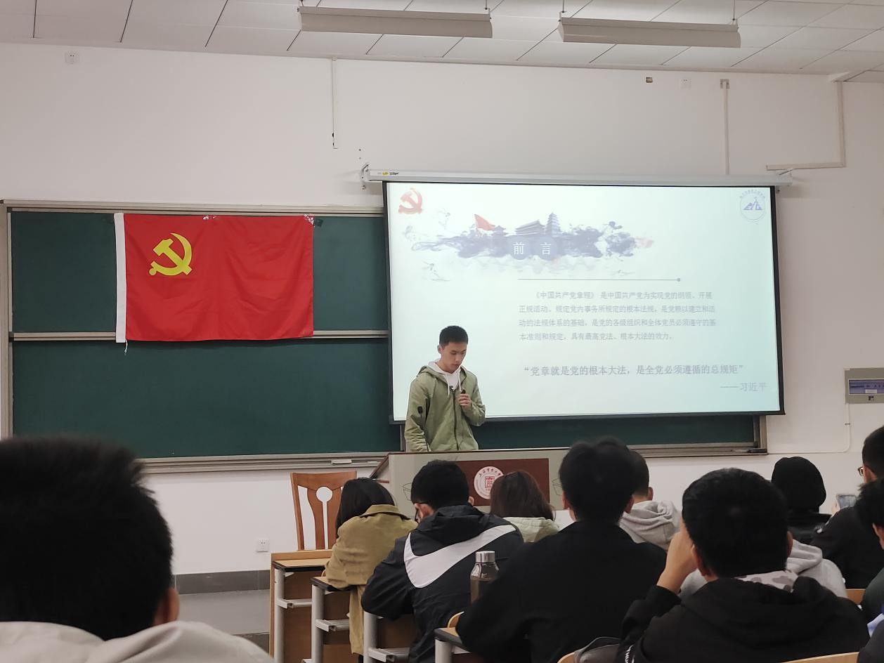 10月22日,新葡萄8883官网amg官网第十期初级党校在临港校区三教106教室顺利举行《中国共产党章程》专题讲座。新葡萄8883官网amg官网辅导员任帼菲,学生党员赵家艺、王龙、张泽楷及全体初级党校学员出席此次学习活动。