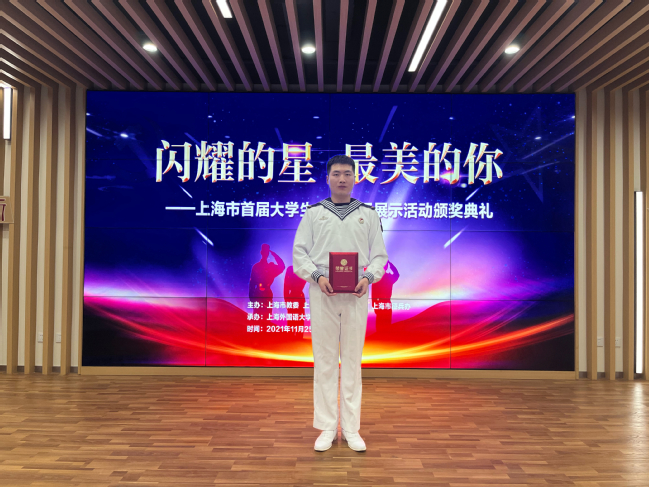 本次活动经过各高校推荐申报、专家评审、现场答辩、评选活动领导小组终评,共评选出 “风采之星”奖、“风采之星”提名奖和“风采团队”奖各10名。我校退伍士兵、新葡萄8883官网amg官网赵家乐在系列评选中脱颖而出,以排名全市第4的成绩荣获首届上海市大学生士兵“风采之星”称号。他曾作为海军方队队员参加庆祝中华人民共和国成立70周年阅兵式,获“国庆阅兵”重大任务纪念章、受到习主席通令嘉奖,如今重返校园,退伍不褪色,卸戎甲不卸初心,充分发挥学生党员的先锋模范作用,用实际行动展现了一名新时代退伍大学生的闪耀风采。