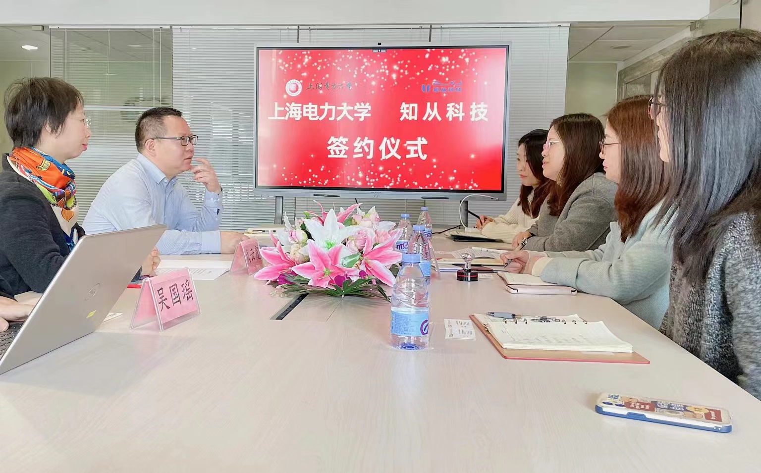 为发挥地域优势,以区域化党建融合为引领,探索校企深入合作新途径,12月17日,新葡萄8883官网amg官网党委书记何西培带队前往位于临港地区的上海知从科技有限公司(以下简称知从科技公司)进行大学生就业实习基地签约挂牌以及党支部共建签约工作,上海知从科技有限公司董事长成云霞、总经理陈荣波予以热情接待。