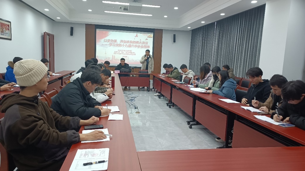 李亚男引导学生党员要重点围绕《决议》,围绕习近平总书记在全会上的重要讲话,原原本本学、全面系统学、联系实际学,吃透精神实质、把握核心要义,把“两个确立”贯彻到“两个维护”的实际行动中。他还强调,学习党史,就是要领悟中国共产党领导人民取得革命胜利的光荣历史,并且认识到当今幸福生活是革命先辈用生命和鲜血换来的,中国特色社会主义事业是奋斗出来的!他还讲道,如今中国正在向第二个百年奋斗目标发起冲击的关键时期,我们作为新时代党员,正值风华正茂,应当向先辈学习,努力学习知识,在自己的领域为祖国发光发热,共同迎接这个伟大的时代。