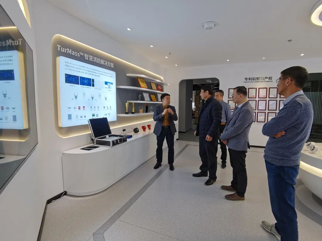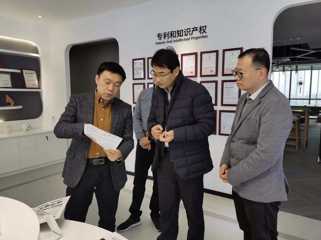 新葡萄8883官网amg官网崔昊杨院长,上海道生物联技术有限公司CEO何辉先生,副总裁陈宏铭先生,副总裁徐敏毅先生,CEO助理李骅女士出席揭牌仪式。崔院长在公司CEO何辉先生的陪同下参观了公司展厅。
