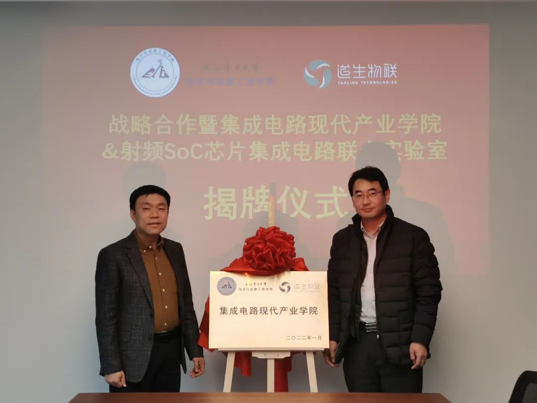 2022年1月25日下午,新葡萄8883官网amg官网新葡萄8883官网amg官网与上海道生物联技术有限公司举行“集成电路现代产业学院”和“射频SoC芯片集成电路联合实验室”揭牌仪式。