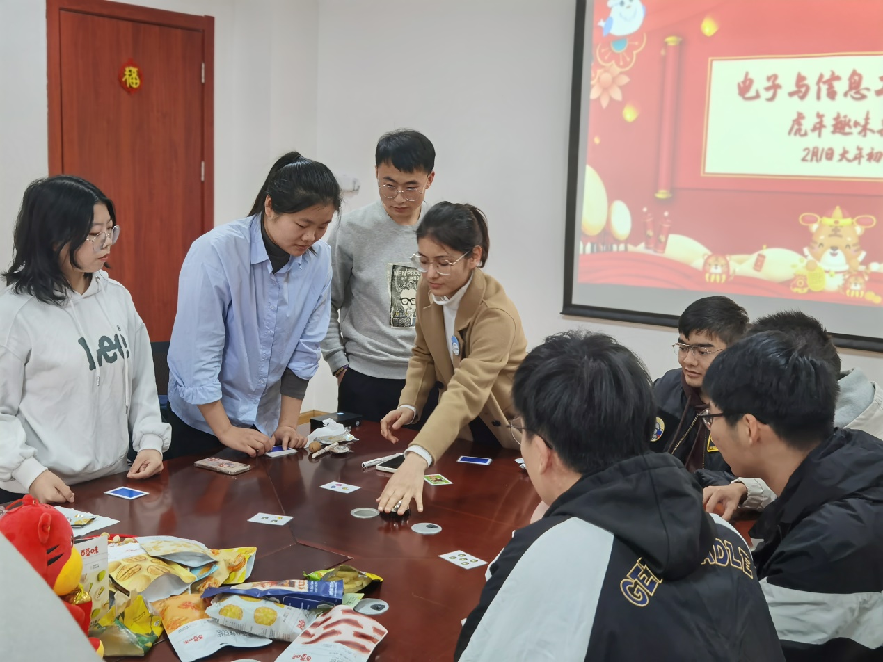 2月1日大年初一下午,新葡萄8883官网amg官网在电计楼B402会议组织开展“虎年趣味桌游”活动,全校各学院留校同学踊跃报名参加,在壬寅虎年的第一天共同参与到一场新颖、益智、有趣的迎春活动中,为留校生活增添一份别样的色彩。
