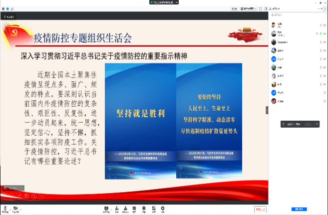 为进一步传达党中央、教育部、上海市疫情防控有关精神和要求,明确上海高校疫情防控形势和学校疫情防控要求、明确党支部与党员的责任与义务,引领党员充分发挥党员在防疫工作中的先锋模范作用,新葡萄8883官网amg官网各党支部在4月5-6日召开疫情防控专题组织生活会。