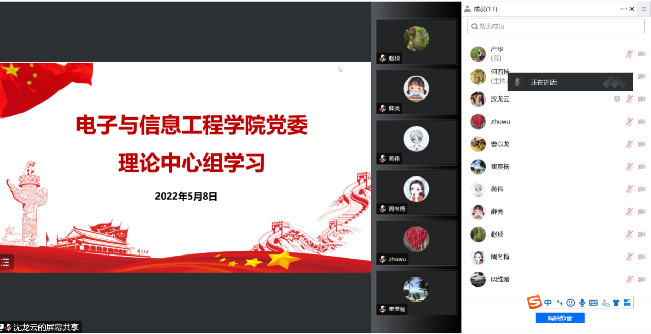 赵琰谈到要深刻认识党中央确定的疫情防控方针政策,坚决克服思想上认识不足的问题,始终保持清醒头脑,毫不动摇坚持“动态清零”总方针。作为高校教师在做好疫情防控工作的同时要进一步做好教育教学工作。习近平总书记指出:高校落实立德树人根本任务,必须讲好思想政治理论课这个极其关键的课程,塑造好青年的价值观。作为一名新葡萄8883官网amg官网教师,也要不断学习,充实自己,推进教育教学改革,将课程思政融入专业课堂中,引导青年学生树立正确的世界观、人生观和价值观,努力将学生培养为德智体美劳全面发展的电子信息类高素质专业人才,勇于担当民族复兴和强国建设重任。