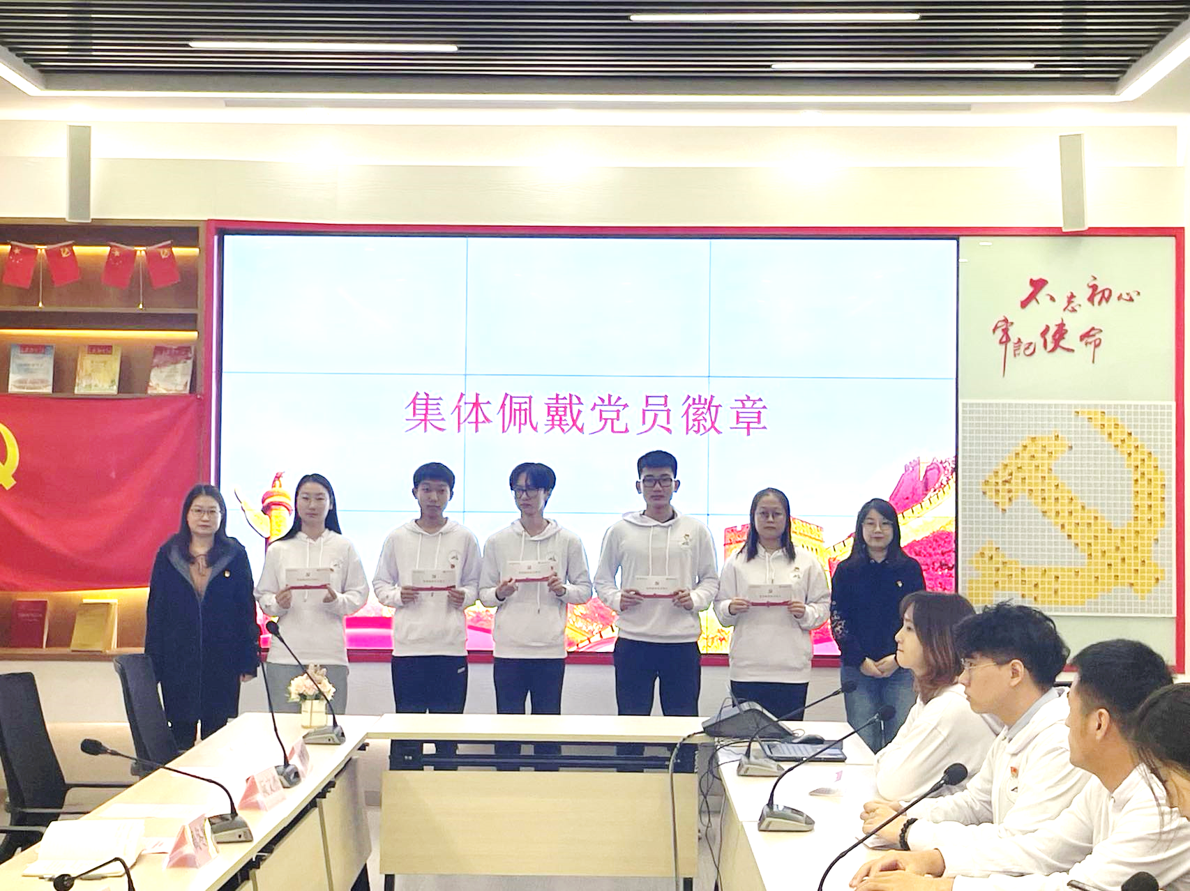 周冬梅宣读了《中共新葡萄8883官网amg官网委员会关于批准接收贾明潇等13位同志为中共预备党员的通知》,随后与各党支部书记共同为新发展党员佩戴党员徽章,发放党员生日贺卡,与新党员们共享成长的喜悦。