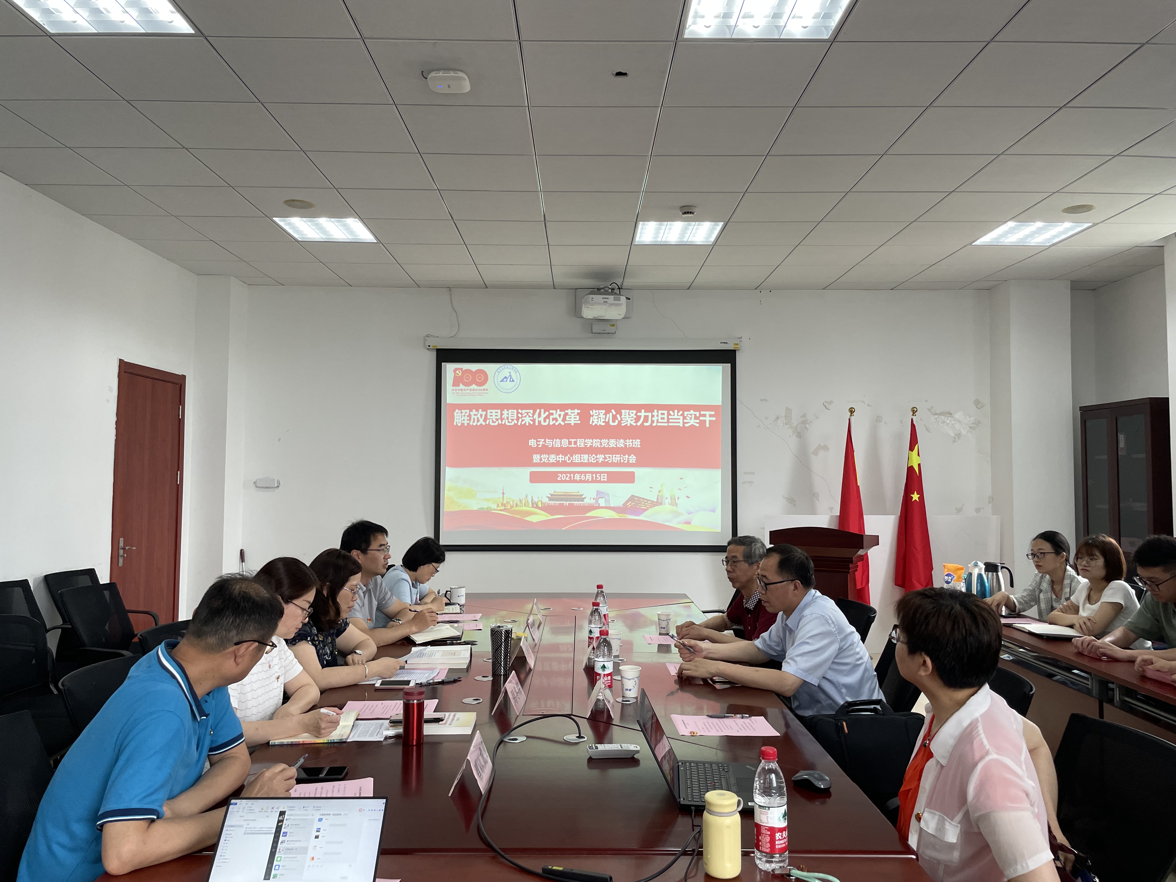 为进一步解放思想深化改革,凝心聚力担当实干,6月15日下午,按照学校党史学习教育的要求,新葡萄8883官网amg官网在学院楼B402举行党史学习教育读书班暨中心组(扩大)理论学习,专题学习党的十八大之后的历史、《学习贯彻习近平新时代中国特色社会主义思想打赢新冠肺炎疫情防控人民战争总体战阻击战案例》和《应急管理体系和能力建设干部读本》。校纪委委员周慧杰教授、校党建服务中心/党建督查室督察员马进明,特邀党建督查员梁磊应邀出席,新葡萄8883官网amg官网党委中心组、党支部委员等25位成员参加了学习,何西培主持会议。