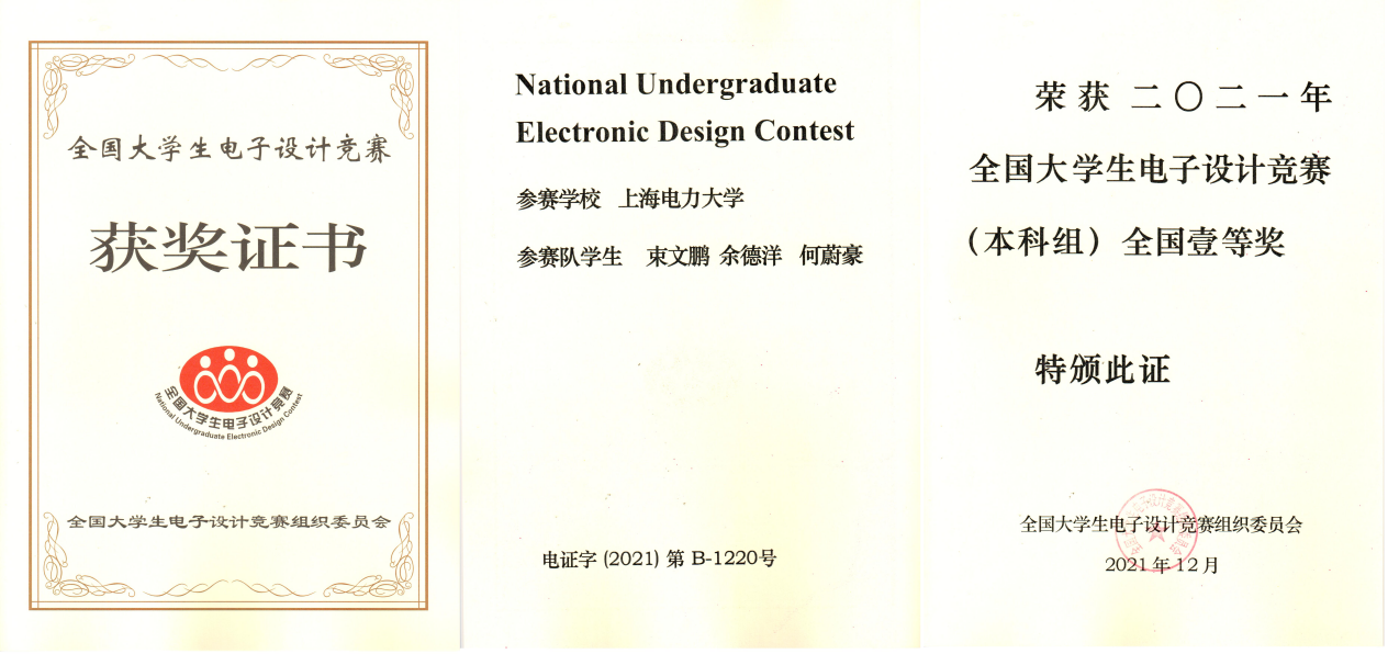 2021年全国大学生电子设计竞赛成绩日前揭晓,我校新葡萄8883官网amg官网学生束文鹏、余德洋、何蔚豪斩获全国一等奖,突破了我校在该项比赛中的最好成绩。
