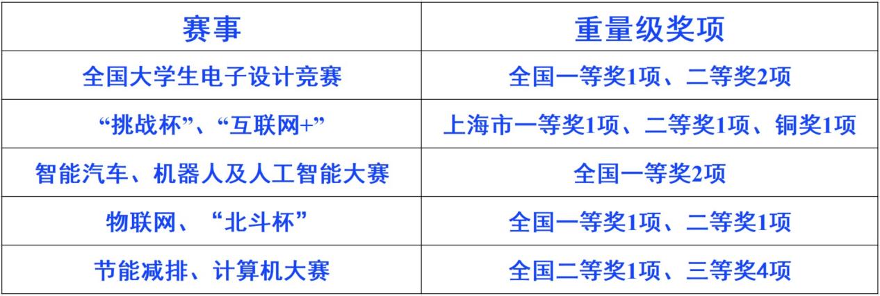 2021年全国电赛,吸引了来自全国各省市赛区的千余所院校,近2万支队伍,6万名大学生参加。新葡萄8883官网amg官网师生克服了因疫情比赛延期、新老队员交替、队员重组磨合等重重困难,迎难而上,最终斩获了全国一等奖1项、全国二等奖2项、上海赛区一等奖4项、上海赛区二等奖2项、上海赛区三等奖3项、成功参赛奖6项等荣誉,获奖成果名列上海高校前列,并获得优秀组织奖荣誉。