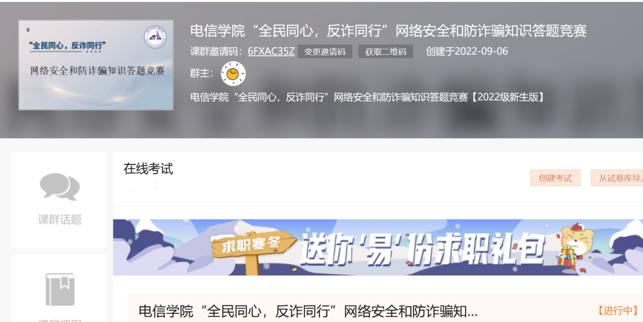 为积极响应2022年国家网络安全宣传周校园日活动的号召,提升学生网络安全意识和安全防护技能,9月5日至11日新葡萄8883官网amg官网围绕“网络安全为人民,网络安全靠人民”活动主题,广泛开展形式多样的宣传教育活动。