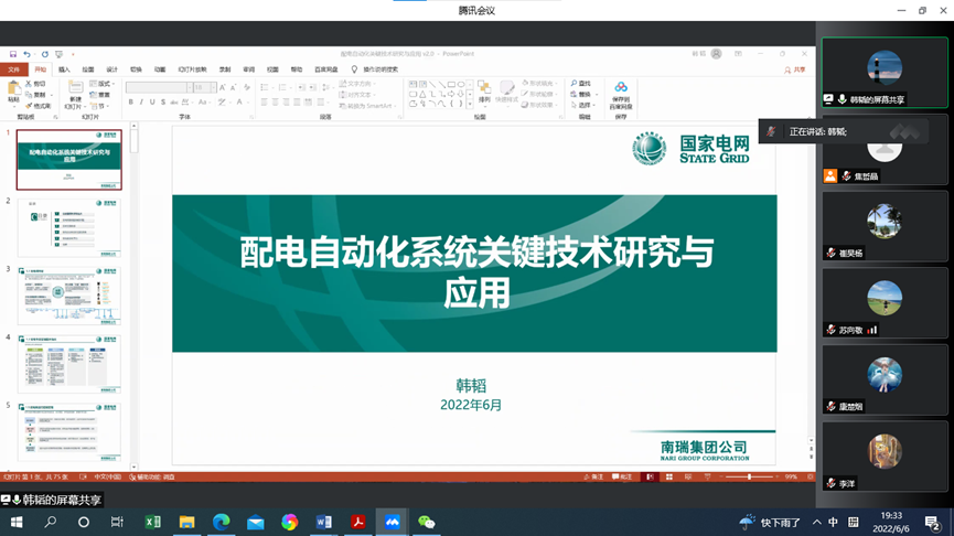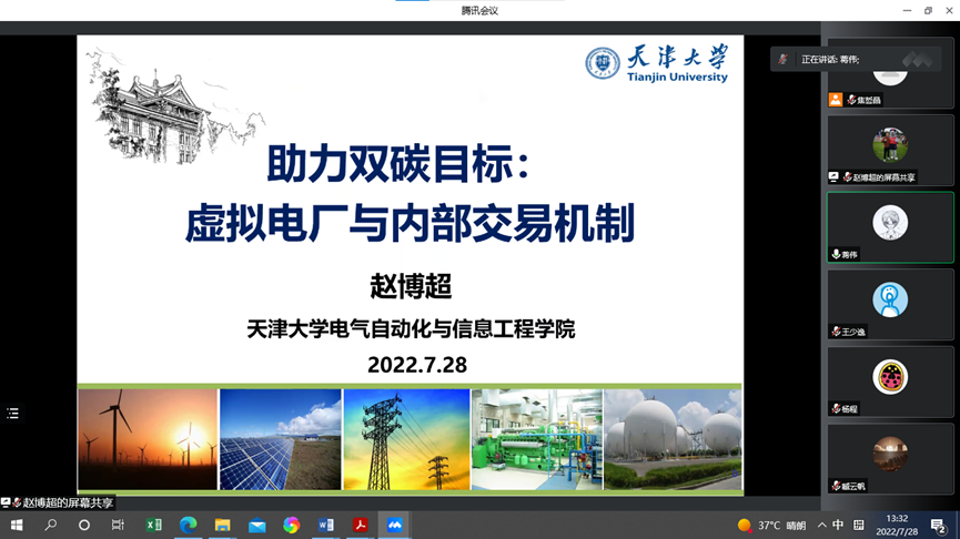 杜红卫副总经理围绕新型配电系统技术和配电物联网技术,介绍了新型电力系统下配电网面临的新形势、新型配电网技术热点与技术趋势、配电物联网建设技术架构、关键技术以及物联网技术在新型电力系统的应用;韩涛经理围绕配电自动化关键技术研究与应用,介绍了配电网的特征、配电网管理面临的问题、配电网的技术支撑体系、配电自动化运行监控系统和配电数字化平台等内容;陈建新总工程师围绕双碳目标下中国核电的发展与安全,对核能技术的发展、核电关键技术和双碳目标下中国核能的发展进行介绍;赵博超博士以虚拟电厂的概念为切入点,介绍了虚拟电厂的关键环节与支撑技术,重点介绍了基于主侧联盟链的区块链部署架构,本地能源共享市场等。
