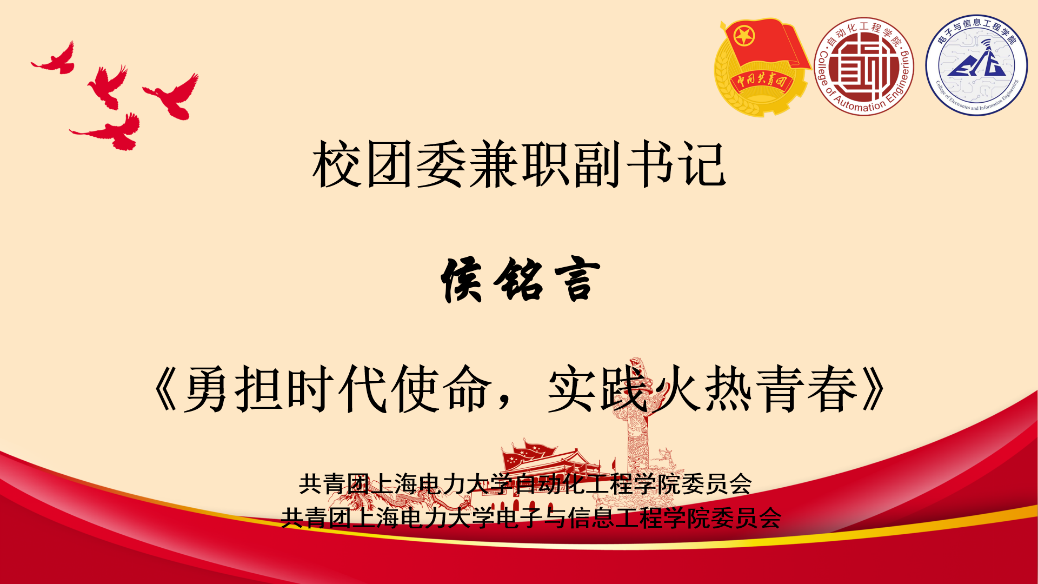 侯铭言作《勇担时代使命,实践火热青春》的主题演讲,讲述了共青团组织的“强三性”和“去四化”,希望广大同学要抓住当代青年的时代际遇,培养高尚品格和自身综合能力,与强国进程同生长、共前进。