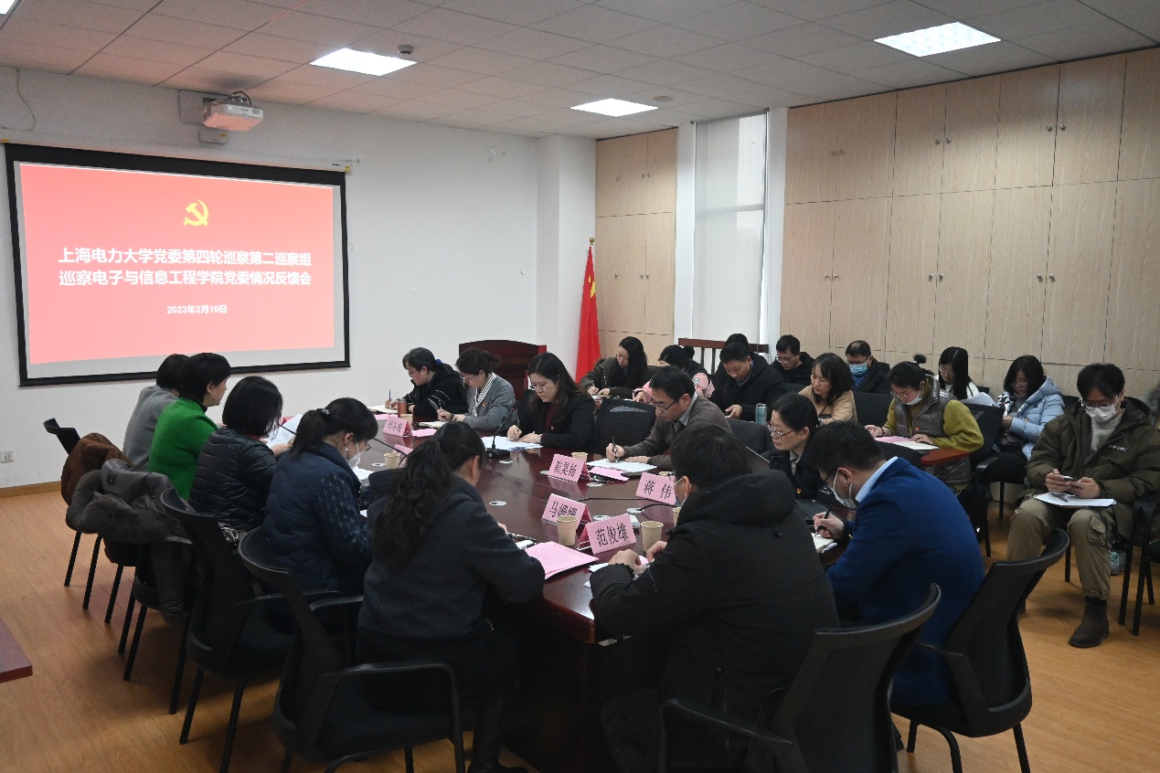 2月10日下午,校党委第四轮巡察第二巡察组巡察新葡萄8883官网amg官网党委工作反馈会在临港校区电计楼B402会议室召开。校党委巡察办副主任潘耀芳,校纪委审查调查室主任王云欢、校党委专职组织员马姗姗、校党委巡察办巡察专员施锋锋、校党委第四轮巡察第二巡察组组长毛静涛、副组长余静、联络员范俊雄出席,新葡萄8883官网amg官网党政领导班子成员、党委委员、党支部书记、党政办公室主任、专职组织员、分工会主席、专业负责人、分团委书记、民主党派代表、教师代表等20余人参加会议。会议由新葡萄8883官网amg官网党委书记何西培主持。
