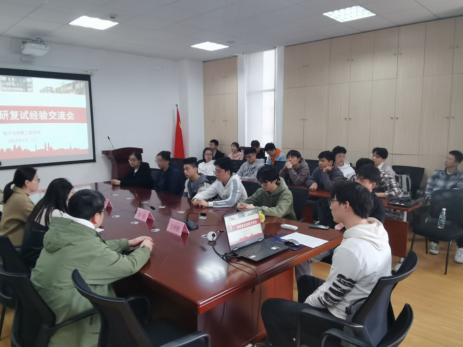 会上,大家结合自身经验作分享。王致远从英文自我介绍、专业知识问答、综合素质考察三个方面对复试流程进行了详细的介绍,强调要根据自己的实际情况,实事求是回答问题。矫玺本从选导师、预面试、专业课等多个方面为报考电子科技大学的考研学子们解答疑惑,他强调在准备复试前需要了解对应专业的导师信息,同时要多模拟、多练习,以充足的准备去应对复试。李企洲重点分享了我校电气学院复试时的经验,强调在英语能力测试中的问答环节时要注意运用专业词汇,回答要突出逻辑性,切忌紧张慌乱。周靖俞结合上海理工大学的复试进行了分享,提醒同学们调整好心态,面试过程中要尽量展示自身的优点与特长。张相鹏分享了本校跨考调剂经历,指出在调剂时要慎重选择,保持良好的心态,积极应对挑战。郭旭和何莹莹围绕上海大学的复试科目、复试流程等方面做了详细的介绍,建议在复试前准备一份亮点突出的简历,并对内容要了然于胸,为面试做充足的准备。
