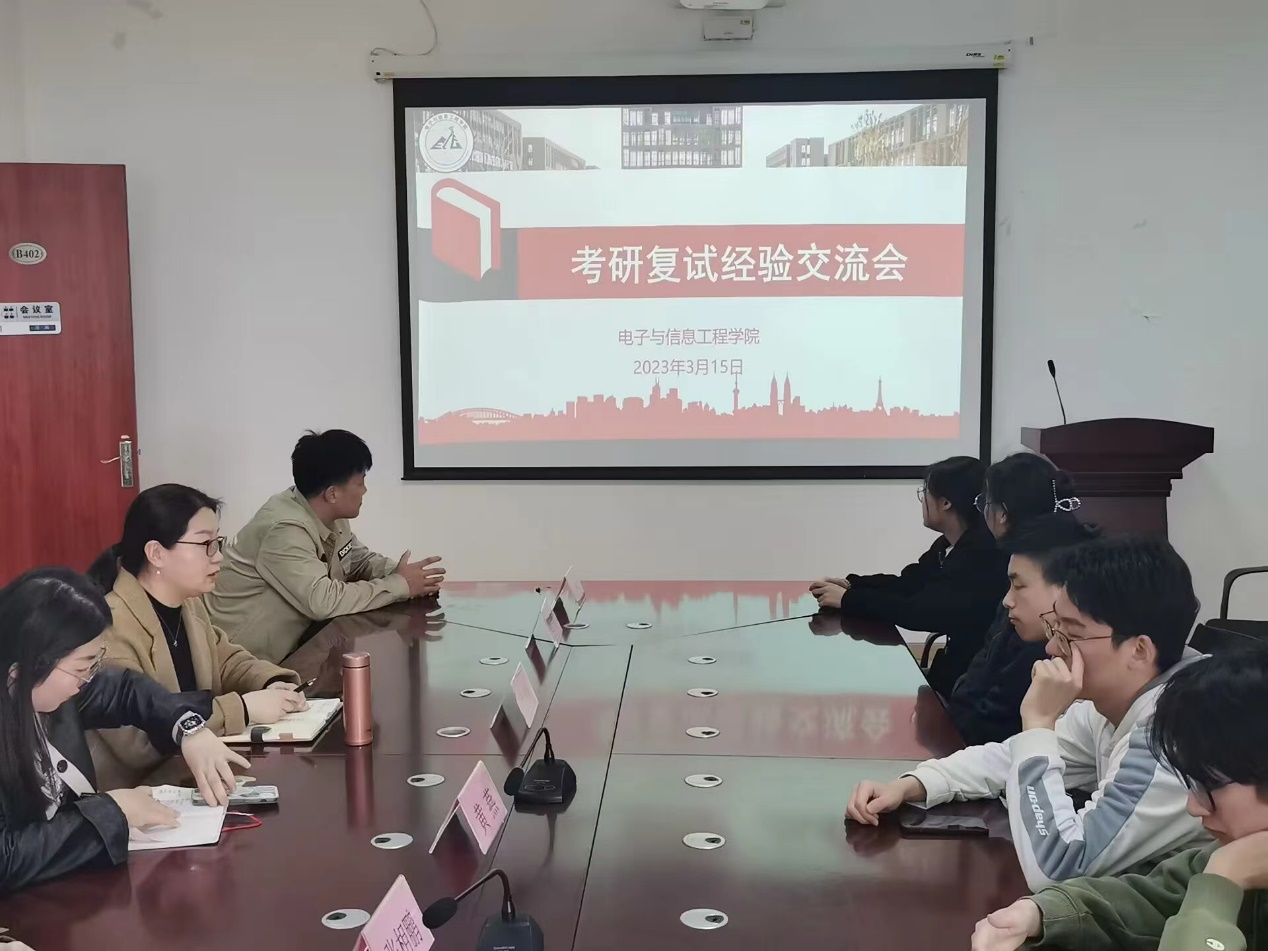 为做好2023届毕业生考研复试、调剂服务工作,提高复试成功率,新葡萄8883官网amg官网于3月15日以线上线下相结合的形式开展了考研复试经验交流会。会议邀请到来自电子科技大学、上海大学、上海理工大学以及我校的7位优秀校友分享复试经验,学院党委副书记周冬梅、光电信息科学与工程专业教师薛亮、就业专项负责人黄燕以及2023届考研学生参加此次活动。