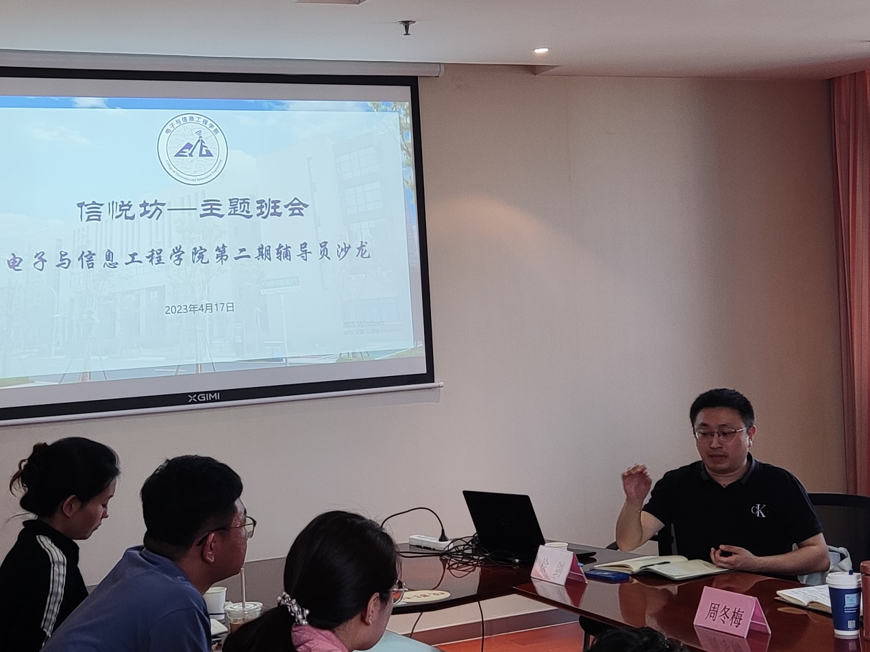 为不断提升思想政治教育工作水平和质量,进一步推动辅导员队伍专业化职业化建设,提升辅导员职业技能及参赛水平,增强立德树人实效,4月17日,新葡萄8883官网amg官网组织开展“信悦坊-主题班会”第二期辅导员沙龙活动,特邀上海市高校辅导员主题班会课展示活动一等奖获得者、同济大学辅导员徐剑来校做主题分享,新葡萄8883官网amg官网党委副书记周冬梅及全体辅导员参加。