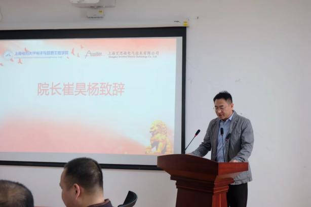 崔昊杨对上海艾思逊电气技术有限公司相关领导的到来表示热烈欢迎,并预祝本次活动取得圆满成功。同时,他对学院产学研合作情况进行了介绍,新葡萄8883官网amg官网始终秉承开放、创新的理念,与众多优秀的企业紧密合作,建设了一批校外实践基地和联合实验室,校内外共同合作培养学生的创新精神、创业意识和实践能力。他表示,希望后期与艾思逊公司深层次合作,不断推出前瞻性和战略性的举措,为双方的产教融合、联合实验室的建设做出成效。