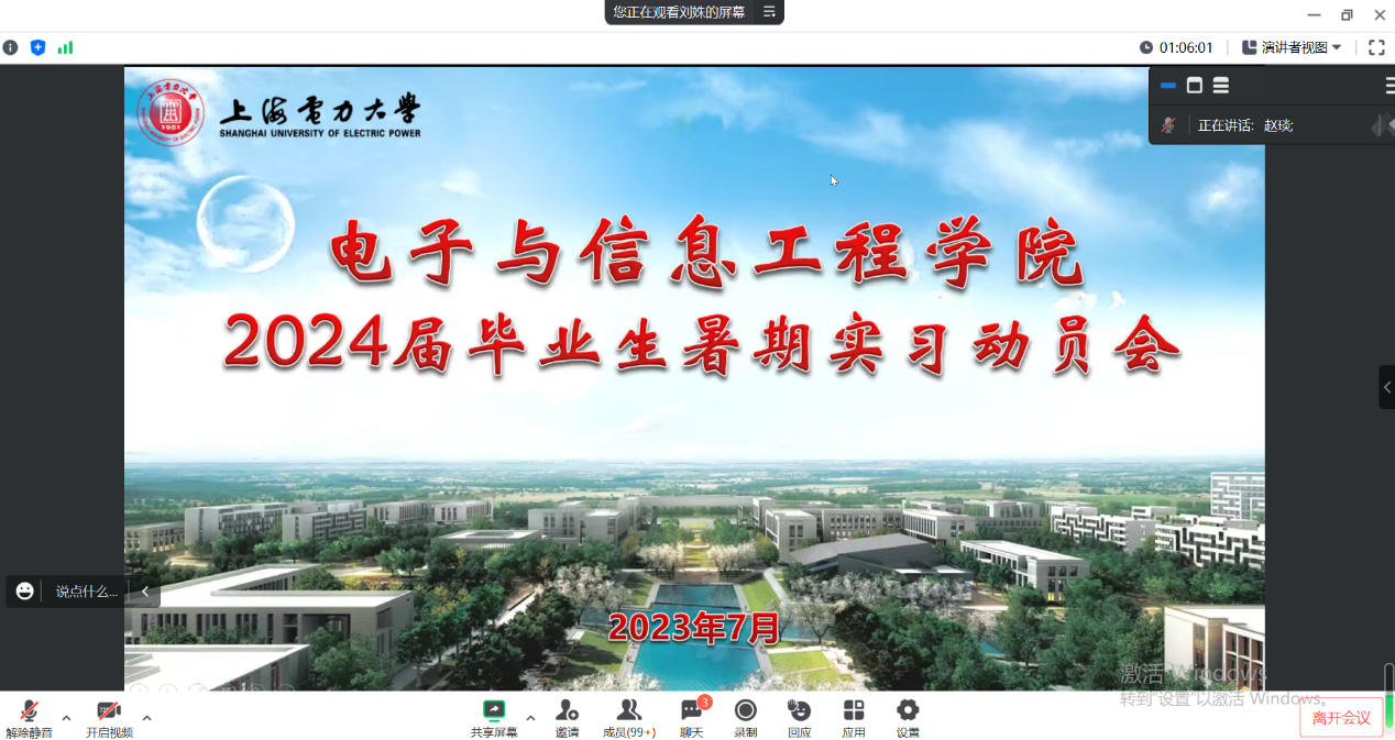 赵琰首先向同学们讲解了暑期实习的意义和目的,并针对同学们现阶段反馈的相关问题,详细介绍了后续毕业实习的时间安排、实习岗位选择、实习期间的任务、要求及考核方式等,并提醒同学们在实习过程中巩固专业知识、培养实践能力、提升职业素养和积累工作经验,为未来打下坚实基础,发扬电信学子求知好学的良好精神风貌。