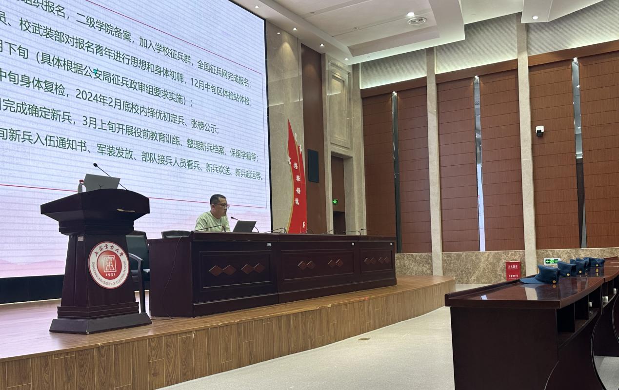 阮文杰首先介绍了我校历年的征兵入伍情况,展示了部分优秀入伍士兵的典型事例,随后介绍了上海市及我校给予入伍、退伍学生的相关优惠政策,鼓励广大有志青年踊跃参军、报效祖国。