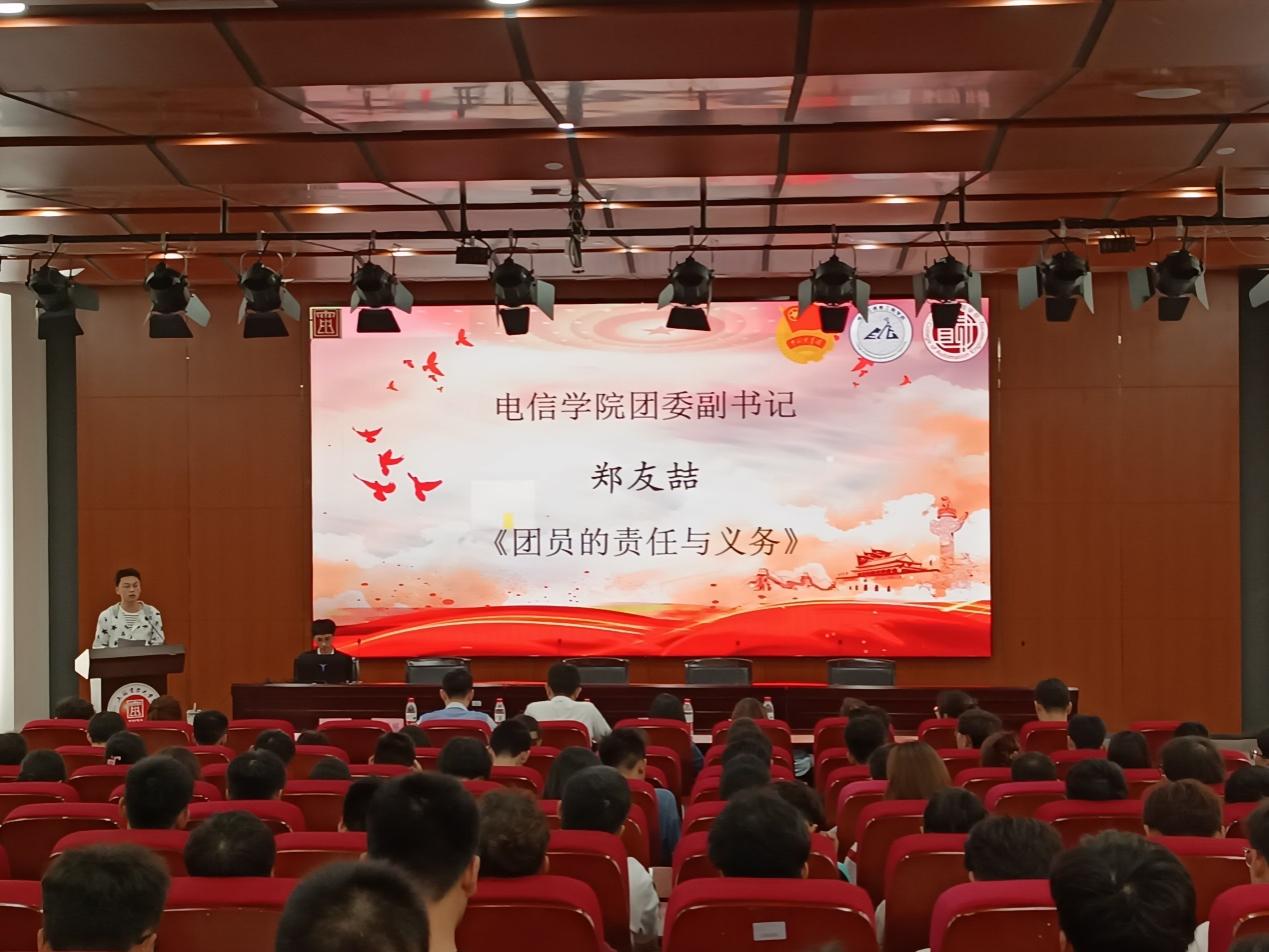 随后,新葡萄8883官网amg官网团委副书记郑友喆围绕《团员的责任与义务》展开分享,他指出各位团员要明确自身的权利和义务,积极学习共青团的相关理论知识,提高思想境界,发挥团员的模范带头作用。