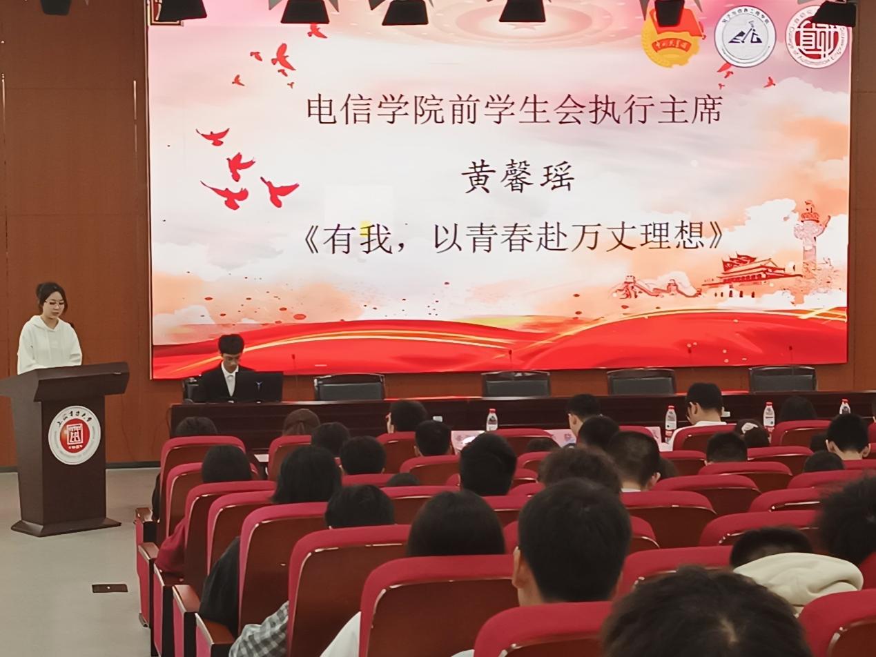 黄馨瑶以《有我,以青春赴万丈理想》为题开展主题分享,她结合自己第一次参加初级团校的心态,以及自己大学期间的成长历程,对参会同学寄予殷切嘱托。她表示,大学阶段正是对未来充满期待,同时又面临重要人生抉择的关键时期,希望青年学生们明白自己的前途命运同国家和民族的前途命运息息相关,当作出重要选择时,要把国家的需要放在第一位。同时要积极适应新环境,敢于挑战自我,超越自我,努力学习,不断进步。她希望青年学生能够拥有积极的、热血的人生信念,不负时代,不负韶华。