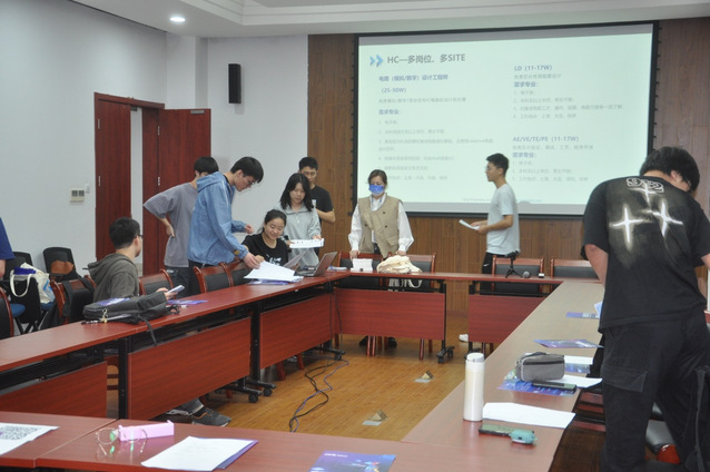 着学生对企业的进一步了解,公司人资专员从工作与生活两个方面向同学们详细介绍了招聘岗位、培养方式与晋升机制,具体分析了不同岗位所属门类以及需要具备的能力。最后她代表公司向同学们发出诚挚的邀请,期待与上电学子共同挑战当今时代的新课题。