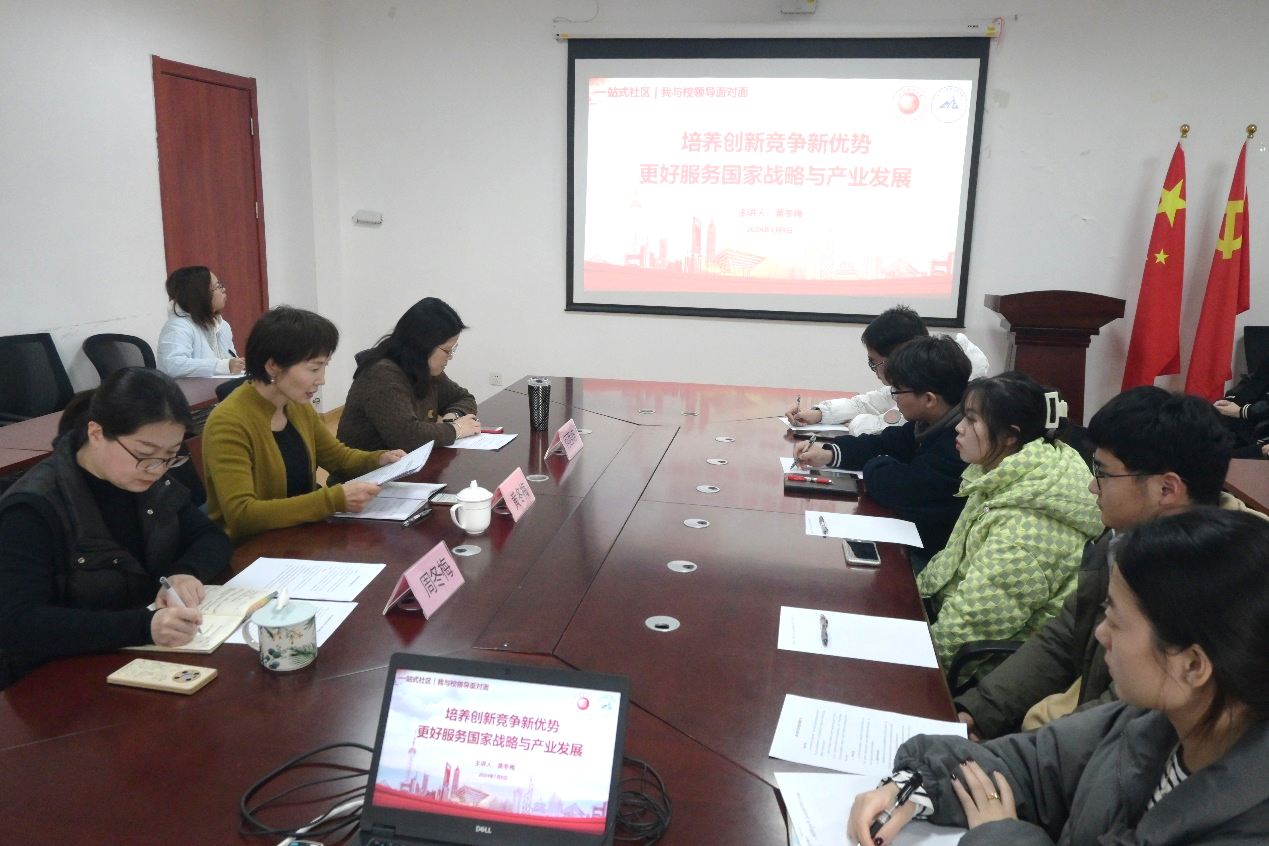 为贯彻落实立德树人根本任务,深入推进“一站式”学生社区综合管理模式建设,进一步聚焦学生发展,汇聚“三全育人”合力,2024年1月8日,副校长黄冬梅在临港校区电计楼B402会议室与新葡萄8883官网amg官网师生开展了“我与校领导面对面”座谈会。新葡萄8883官网amg官网党委书记何西培、党委副书记周冬梅,以及辅导员、本科生、研究生代表参加会议,会议由何西培主持。