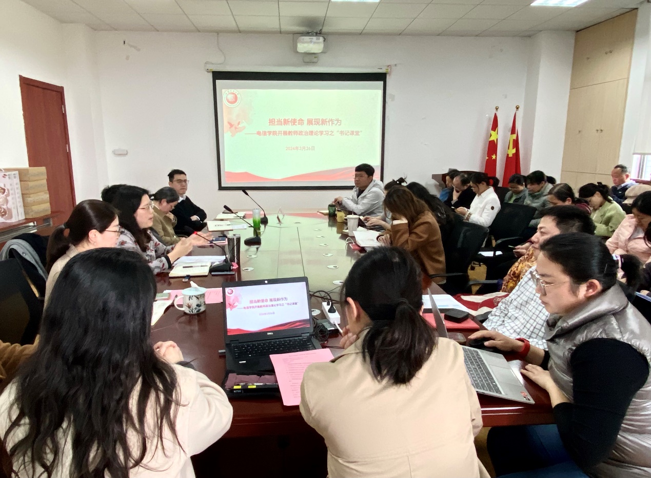 为深入学习贯彻习近平新时代中国特色社会主义思想和全国两会精神,进一步提高全院教师的政治素养和理论水平,加强师德师风,强化责任担当,3月26日下午,新葡萄8883官网amg官网在电计楼B402会议室开展教师政治理论学习,学院党委书记何西培以“担当新使命,展现新作为”为题作“书记课堂”,学院全体教职工参加。