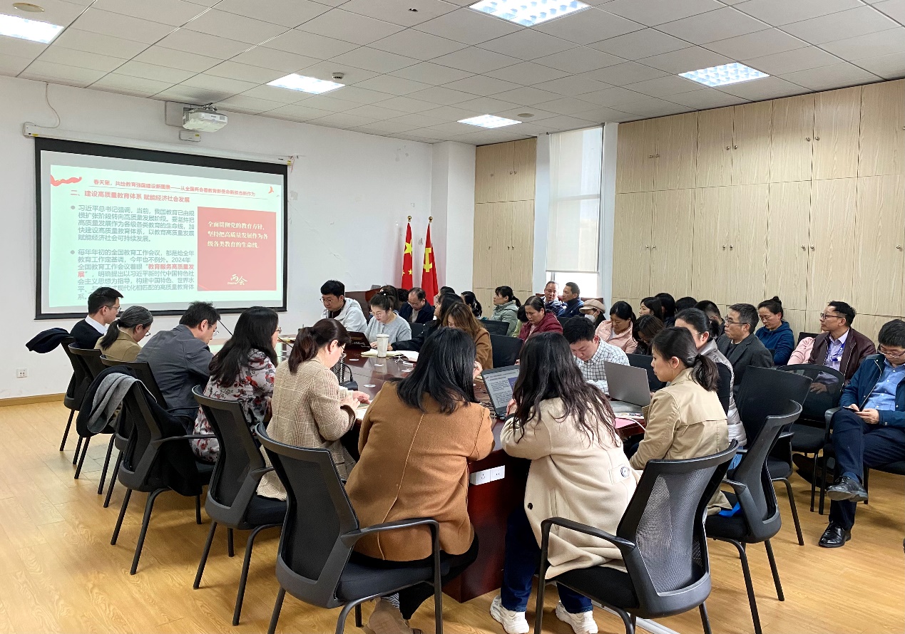 何西培从文章《春天里,共绘教育强国建设新图景——从全国两会看教育新使命新担当新作为》为切入点,首先向全体教师传达了全国两会精神,指出全国两会是跳出教育看教育的一个窗口,立足全局,放眼长远,把准教育在中国式现代化进程中的定位和方向。她指出要结合学校和学院的发展实际情况,深入了解国家改革发展的新方向和新要求,紧跟时代步伐,勇于创新实践,始终坚持以人为本的教育理念,关注学生的全面发展,深入挖掘教育资源,加强师德师风建设,提升教育教学质量,推动教育创新发展,为学院的全面发展注入新的活力和动力。