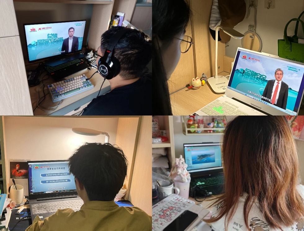 本次公开课涵盖了国家安全学的基础理论、主要大国国家安全战略与政策、重点领域国家安全风险研判及国家安全能力评估等相关知识及分析方法,使学生了解掌握国家安全的基本理论和实践知识。此外,公开课还覆盖了包括国家安全法、网络安全法等多个主题内容,以提高学生的法律意识和遵守法律的能力。同学们对本次课程的内容表现出浓厚的兴趣,纷纷在宿舍、实验室等地自发进行观看。