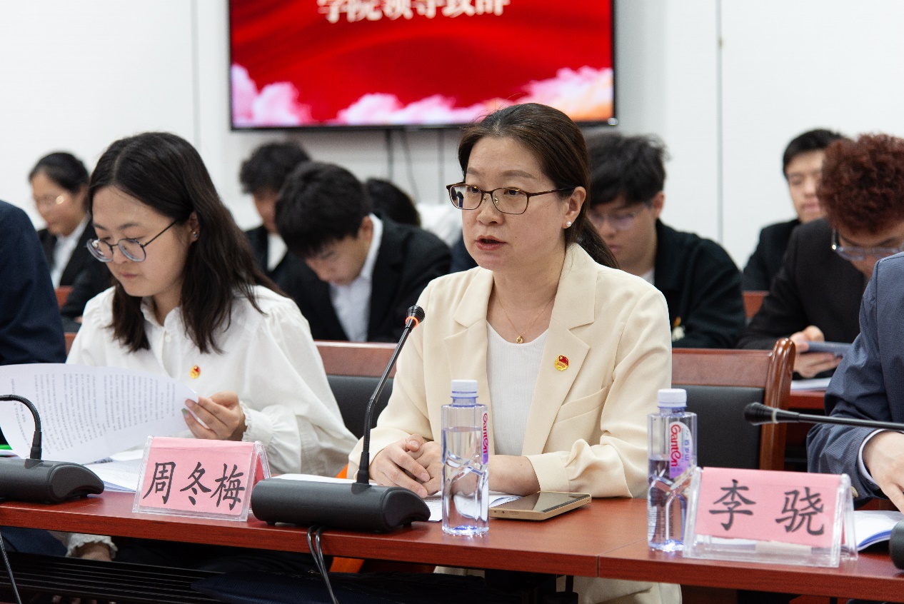 周冬梅代表学院党委致辞。她高度评价了学院学生组织在学生工作、学术科研、社会实践、志愿服务和校园文化建设等方面做出的积极贡献,并对广大青年提出三点希望:一是珍惜大学时光,努力学习,不断提高综合素质和竞争力;二是积极参与学院建设,建言献策,为学院发展贡献力量;三是树立正确的世界观、人生观和价值观,听党话、跟党走,坚定理想信念,为国家和人民的事业努力奋斗。