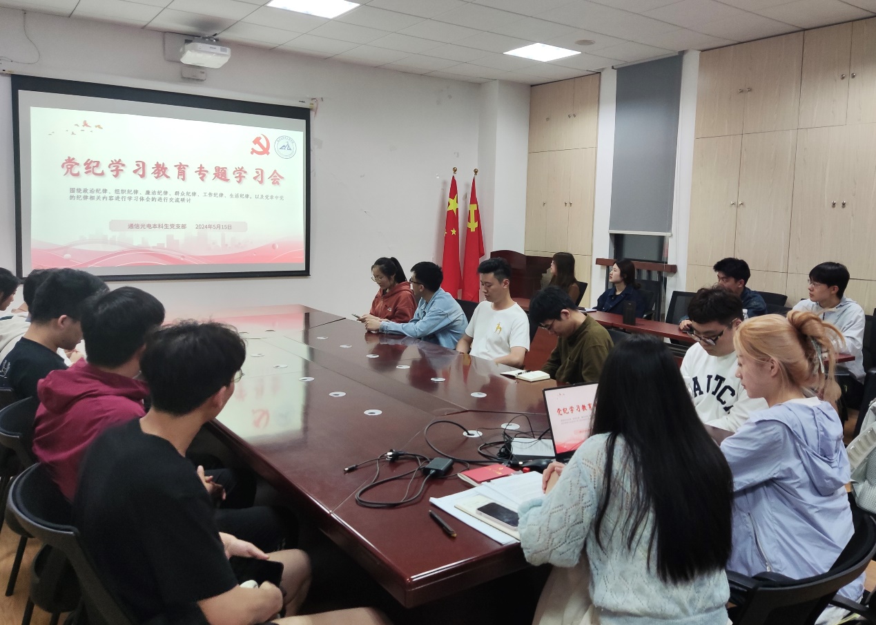 为深入开展党纪学习教育,进一步使党纪党规入脑入心,引导党员不断增强纪律意识,在支部内营造学纪、知纪、明纪、守纪的良好氛围,5月15日晚上,通信光电本科生党支部在电计楼B402会议室开展《中国共产党纪律处分条例》学习和党纪学习教育专题学习会,联系支部的新葡萄8883官网amg官网党委书记何西培和支部全体党员参会,会议由支部书记刘甘雨主持。