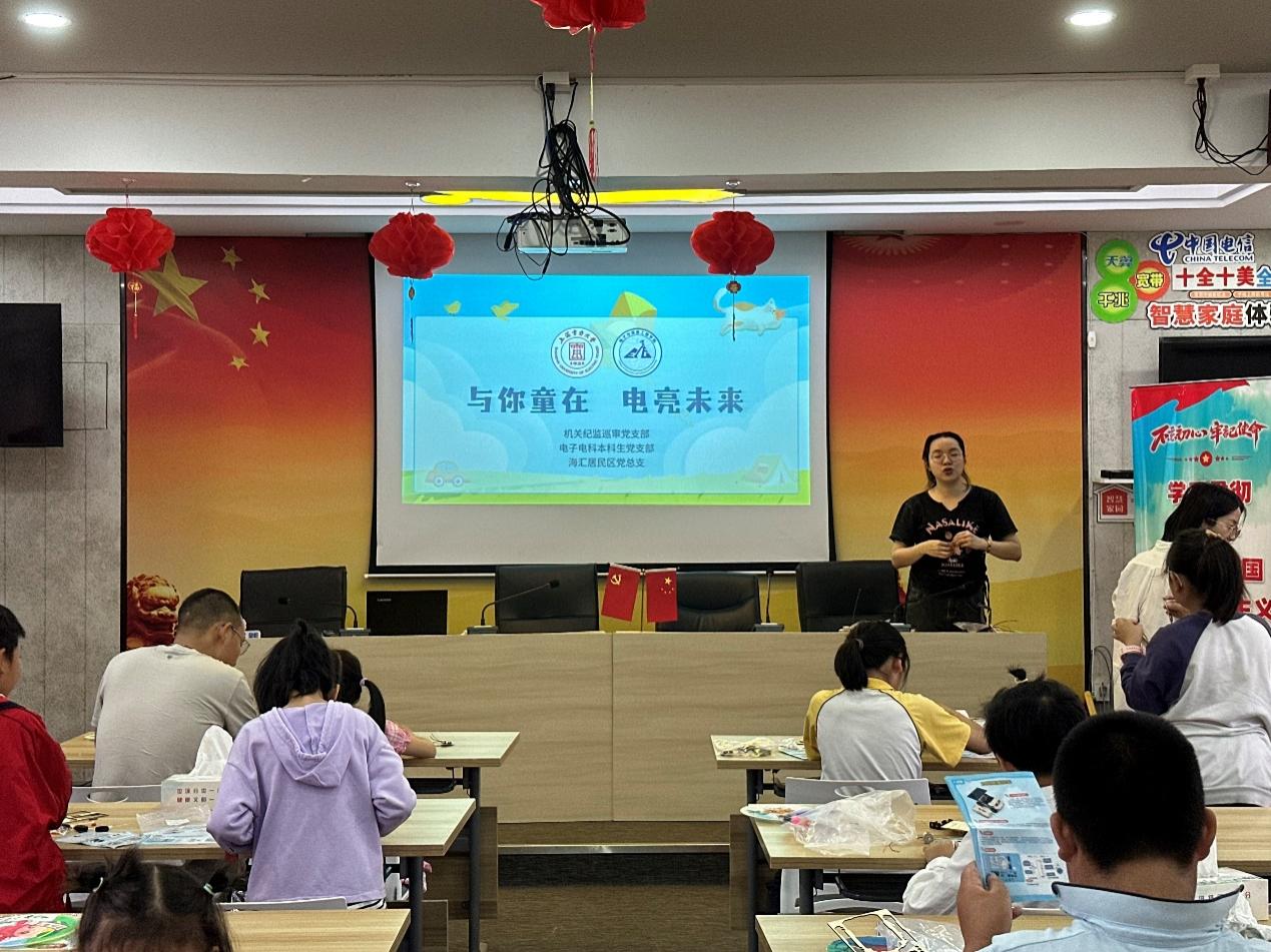 5月25日上午,在“六一”国际儿童节即将到来之际,机关纪监巡审党支部与新葡萄8883官网amg官网电子电科本科生党支部前往海汇居民区联合开展主题为“与你'童'在 ‘电’亮未来”的党日活动,机关纪监巡审党支部书记潘耀芳、电子电科本科生党支部党员、海汇居民区的家长、儿童共30余人参与本次活动。本次活动的目的是加强区域内党建联建工作,勉励学生奋发图强、成长成才,发挥党员模范作用,激发广大青少年点燃科技创新的梦想。