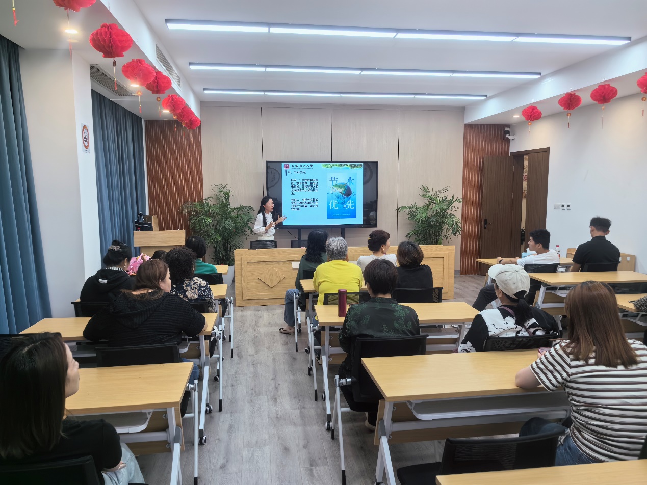 李雅洁介绍了我校在节水方面取得的成效,展示了我校作为上海市节约用水示范(标杆)学校在制度建设、基础设施建设、师生用水等方面采取的一系列措施。她从“为什么要节水”,“怎么样去节水”出发,循序渐进带领社区居民学习节水政策、法规、生活节水小常识、小妙招,进一步提升了居民的节水意识。活动现场还通过设置宣传咨询台、悬挂宣传标语、发放宣传手册等形式,向居民科普节水知识,分享日常节水小窍门,并开展了居民关于节水用水方面的咨询服务。