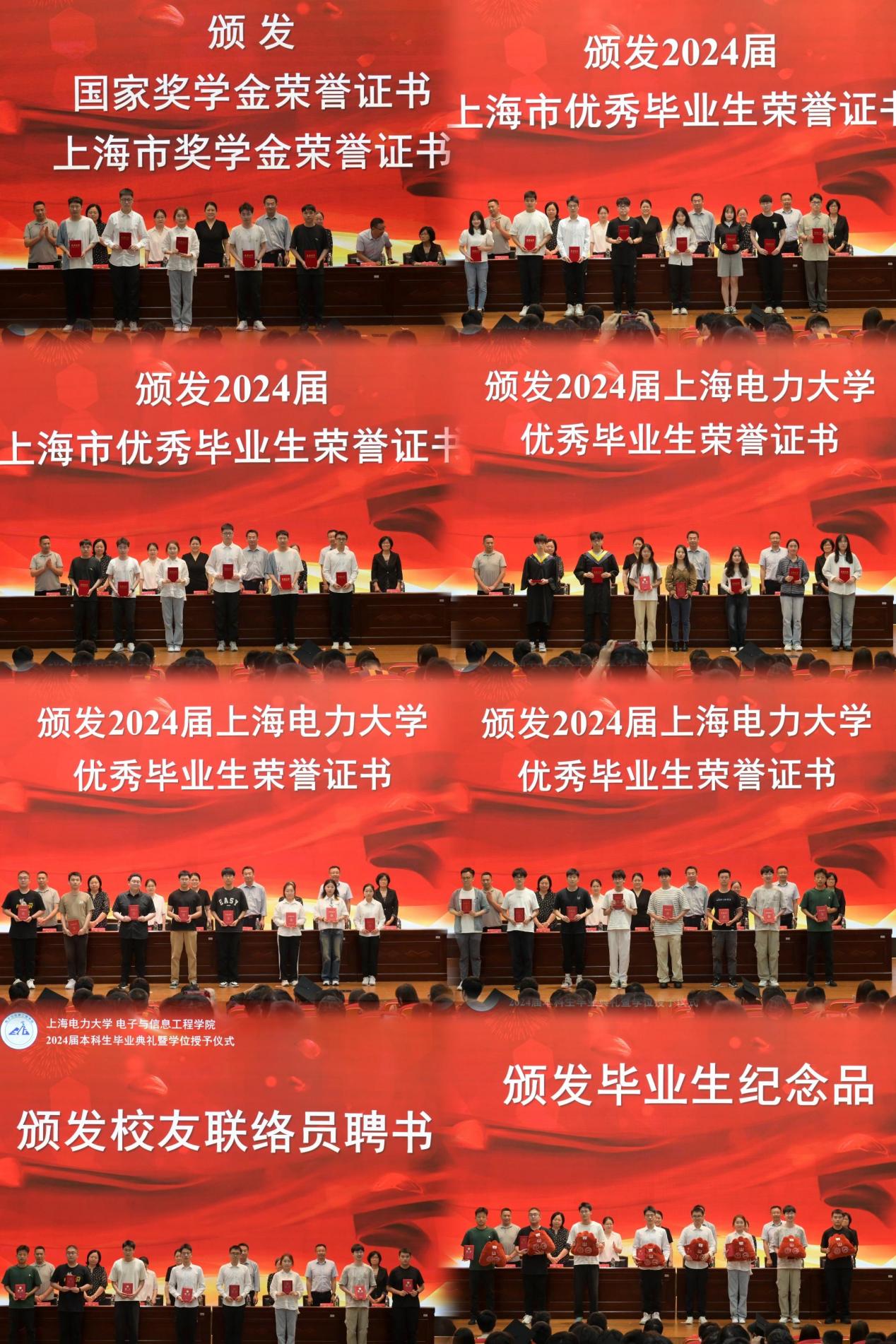 会上,何西培宣读《关于表彰本科生国家奖学金、上海市奖学金获奖学生的决定》,赵琰宣读了《关于表彰2024届上海市普通高等学校优秀毕业生的决定》,薛亮宣读《关于表彰2024届新葡萄8883官网amg官网优秀毕业生的决定》,并对优秀学生进行了表彰。通信工程专业系主任贾振堂宣读《新葡萄8883官网amg官网关于聘任2024届“校友年级理事”“校友班级联络员”的决定》,学院领导老师们颁发聘书并赠送毕业生纪念品。